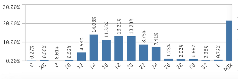 Another way of looking at size distribution is to sort counts according to our main sizing categories that align with pricing groups. In this sense, we see that this season is yielding a significant 54% in the large grade (count 12 to 18). This is largely due to our high % Maluma exported already, as well as the Fuerte (however, in the early weeks of the Fuerte, the size distribution peaked on count 20, compared to the count 14 peak we generally have).